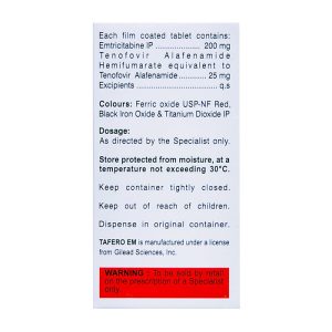 • Thuốc Tafero EM kết hợp của hai loại thuốc kháng retrovirus, Emtricitabine và Tenofovir Alafenamide, chỉ có tác dụng chống lại virus RNA (retrovirus) như Virus gây suy giảm miễn dịch ở người (HIV).