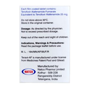 - Thuốc Teravir AF với hoạt chất Tenofovir Alafenamide 25mg được sử dụng để điều trị mãn tính viêm gan B lây nhiễm, một nhiễm virus của gan. Nó hoạt động bằng cách ngăn chặn hoặc làm chậm sự phát triển của virus.